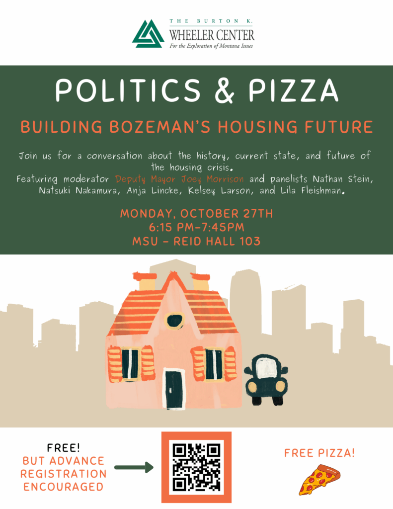 Politics & Pizza is a FREE program geared towards students and the community at large, tackling issues that face Montanans with events held every semester on Montana State University’s campus in Bozeman, MT.
